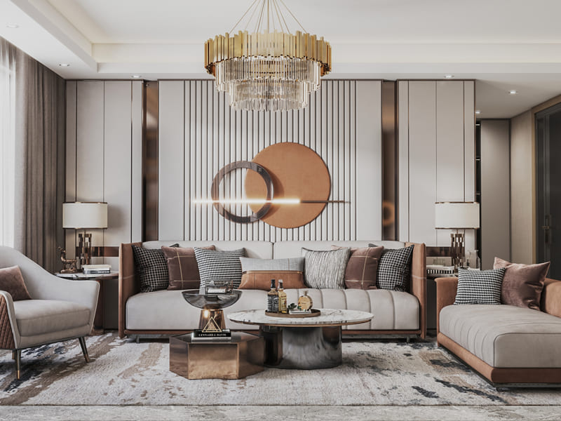 1、客厅需要的装修家具就是沙发、电视柜、鞋柜、花架、茶几、装饰柜、书柜、酒柜等,还可以有一些装饰品吊灯、布艺、挂画、花瓶、植物盆栽等。