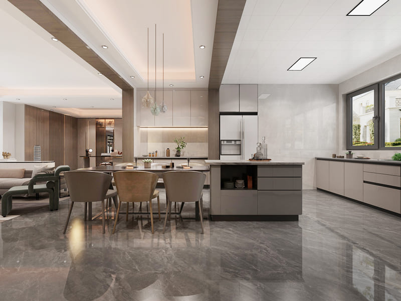 4、厨房地板要安装防滑的,因为厨房用水很多,地面会有水渍,做菜时不注意很容易摔倒,再给厨房安装过地漏让水渗下去。
