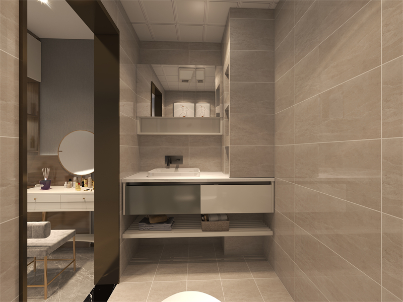 对于大多数家庭来说,房子内可以支配的空间并不是很多,以过日子人的角度来讲,一个较大的平面尽量做到可以收纳为好,所以洗手台上面用镜柜代替单面的镜子是很合理的选择。