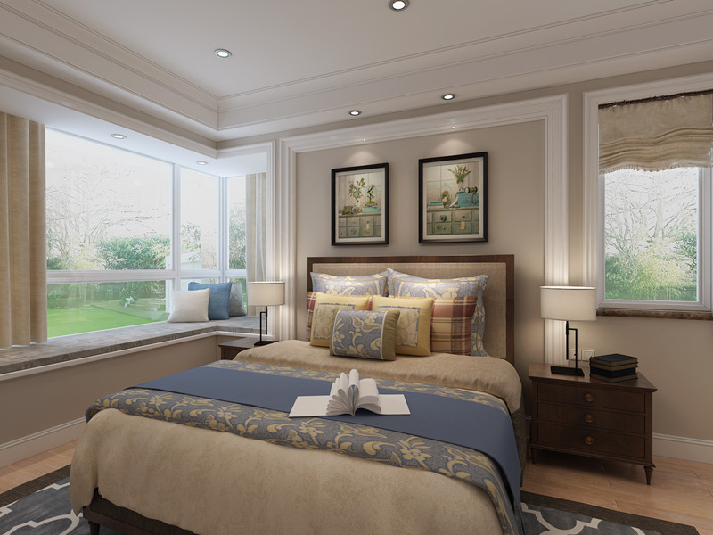 可以在窗户附近设置双层窗帘,节省了面料,节约了空间,使整个卧室看起来更加宽敞、轻盈,而且不必担心会把窗帘弄湿;此外,在窗台上安装要有垂感,建议先考虑一下飘窗是否会有飘窗垫。