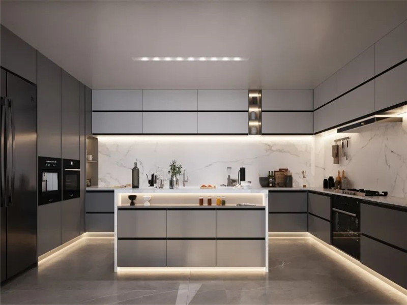 厨房除了安装吸顶灯外,建议再增加一些辅助照明,比如在吊柜下方安装灯带,可以起到局部增加照明的作用。