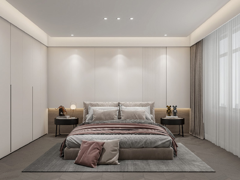 作为卧室主要的一部分,基本卧室内所有的家具都是围绕床所布局的,所以要先确定好床的位置。