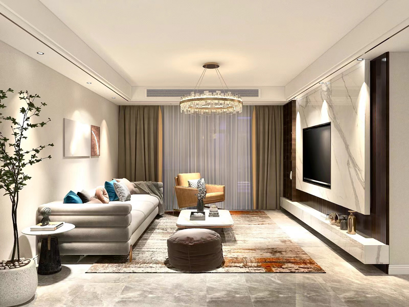 本案例风格定位于轻奢风,注重空间的运用,用灯光营造室内气氛,运用现代手法与传统元素融合引入室内设计。