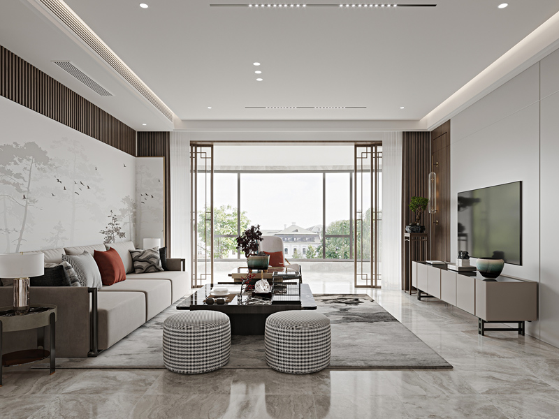 本案例风格定位于新中式,带给人庄重与优雅的双重感受,吸引眼球、震撼人心。充足的细节元素来造型,营造古典韵味。