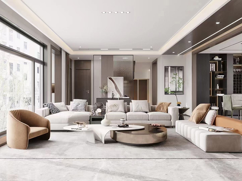 采用简单吊顶,搭配落地窗和无主灯设计,并融入低调细腻质感软饰,诠释优雅惬意的意式极简风格家居。