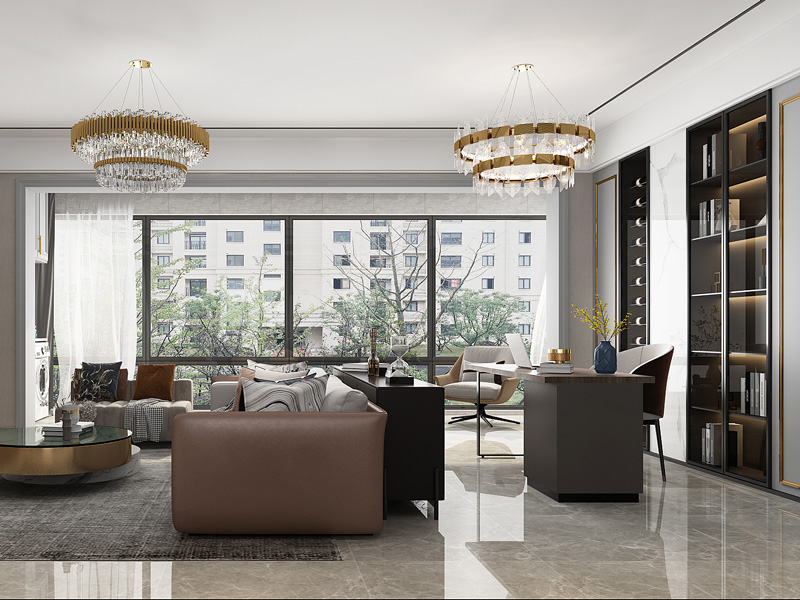 一个空间的布局是很重要的,既能让空间得到有效合理的利用,也能在视觉上更饱和,例如将工作区、品茶区等等布局在客厅空间,既能让工作休闲更放松,还能增添整体的书香气息。
