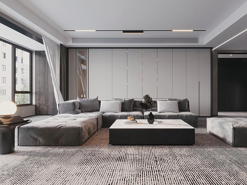 以灰色系做基调,融入无主灯设计,运用意式轻奢风格的设计手法,呈现简雅舒适的家居氛围。一种让生活回归自然本真的表达方式,忘却工作的繁忙与烦忧,享受家的宁静与惬意。