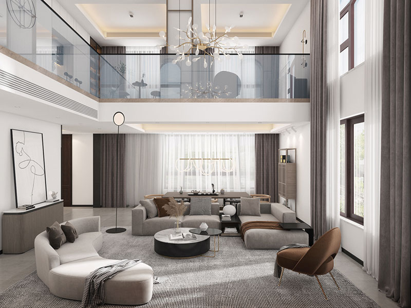 大平层多是一梯一户或者一梯两户,室内空间视野宽阔,家庭温馨氛围满满。别墅多是两层或者多层,跟大户型相比,有回廊、楼道等,赋予室内空间私密感。