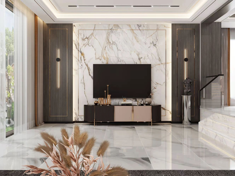 客厅空间采用现代感的设计来进行装饰,呈现出别样的品质感效果,通过细节金属摆件装饰打破了空间的单调,彰显气质。