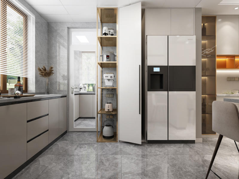 餐厅和厨房均采用开放式布局,实现餐厨一体化设计,用小吧台做隔断,明确功能分区。
