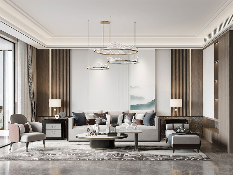 本案风格定位于新中式,在设计布局上端庄大方,富有意境美,简洁淡雅的色调与新中式的细节融于一体,铺陈出别有风致的韵味。