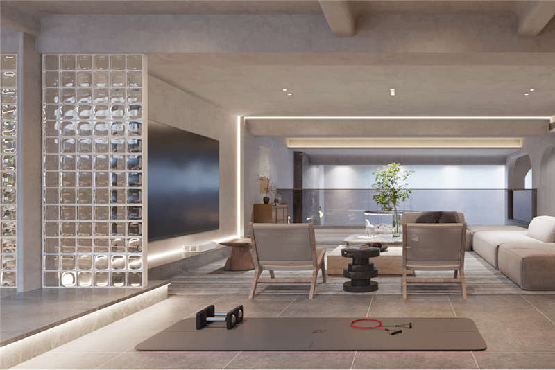 不同功能区之间的隔断可以采用玻璃砖材质砌筑,比起传统的木质、金属等材料,玻璃砖的透光性更好,不会影响空间的采光,另外透光不透视的特点也能很好地保护居住者的隐私。