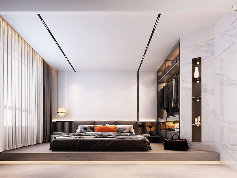 在家居空间中融入地台设计,是可以释放室内的垂直空间的,从而从视觉上增加层高,营造空间的惬意感。