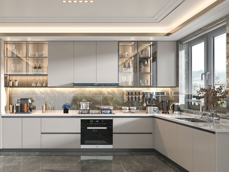 通常情况厨房会安装吸顶灯,但是这种设计如果背光的话会造成一定的操作盲区,影响台面操作,建议在吊柜下方安装灯带,提升操作体验感。