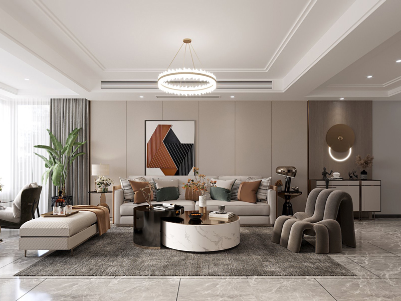 简约不等于简单,客厅正如采用采用浅色系的中性色调,配合适当暖色的软装搭配,在冷淡中寻求温暖,相得益彰。