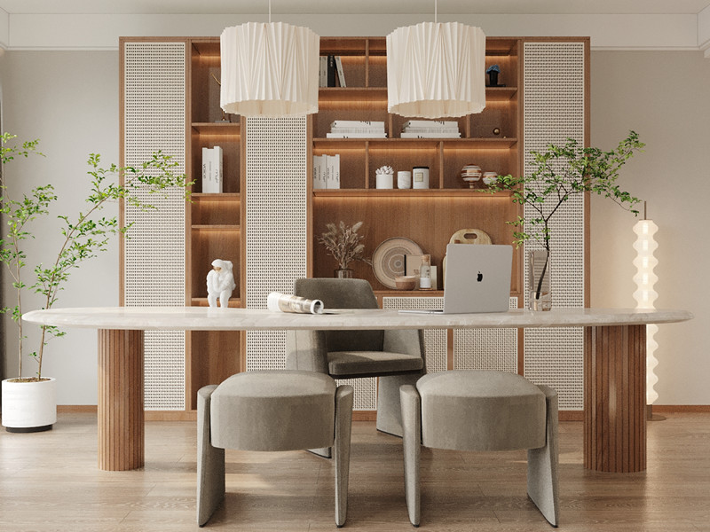融合轻奢细节,通过浅木、低饱和色系与质感材质的搭配,奠定柔和松弛的空间基调。