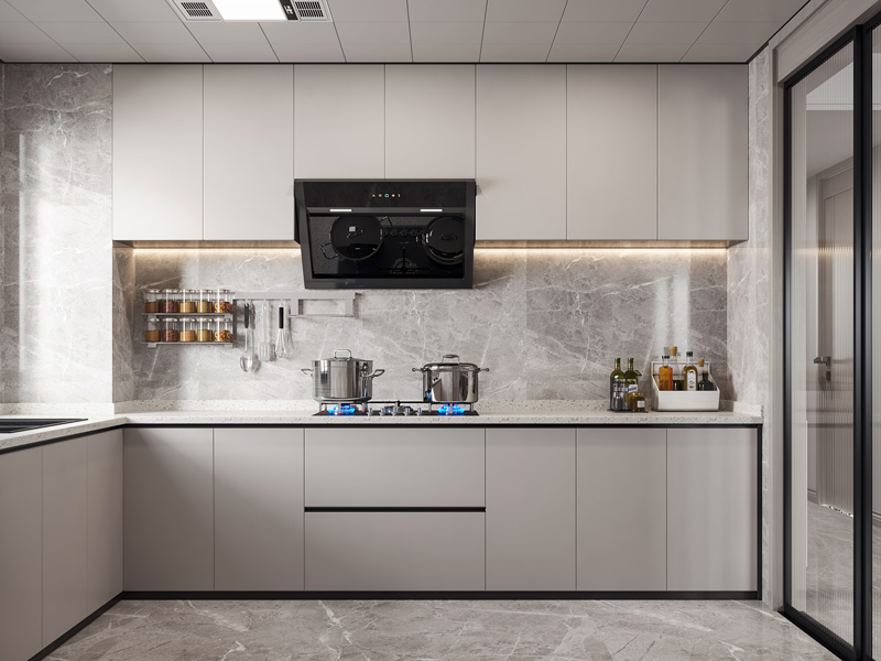 合理的动线可以有效提高做饭效率,在厨房的设计中遵循拿取、洗涮、分切、烹饪、装盘的次序设计,让烹饪更便捷。