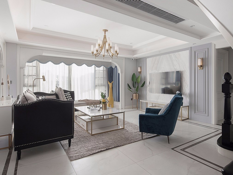本案例风格定位于简约美式,风格呈现出一种精致的生活态度,成就了优雅格调和空间品质,稳重大气。