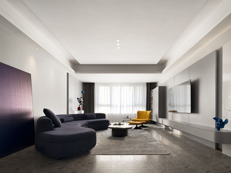 客厅整体十分简洁通透,采用悬空设计电视柜,避免了卫生死角,轻松传达出现代的生活氛围。