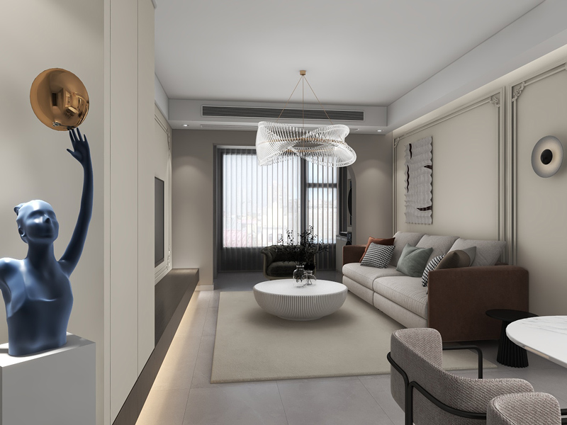 本案例风格定位于现代简约风,清爽的空间色调搭配,让整体视觉低调简洁,细节装饰处合理提升空间氛围感。