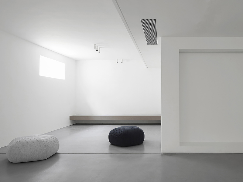 休闲室的设计十分简洁,仅仅一个悬空架搭配两个艺术坐垫,留给区域更多的想象空间,舒适惬意。