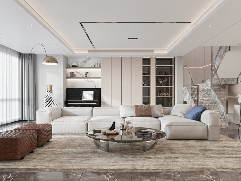 在客厅中预留出钢琴演奏区域,以美观实用作为设计中心,让客厅空间互通,既建立各个空间的关联感,又彰显宽敞通透视野。