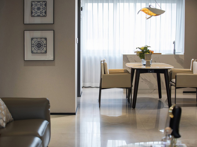 本案例风格定位于现代风,色彩选择较为中性,赋予空间雅致的格调感,结合材质的搭配,赋予空间别样气质。