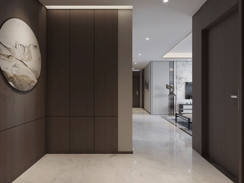 是极简风的标配,通过精准的柜体裁切与墙面找平工艺,实现定制柜与墙面的无缝衔接。视觉上更通透和谐,更大程度凸显极简风格的利落感。但它对施工工艺要求非常高,后期若墙面或柜体出现轻微变形,容易产生问题且难以补救,需要提前在基础与选材上下功夫。