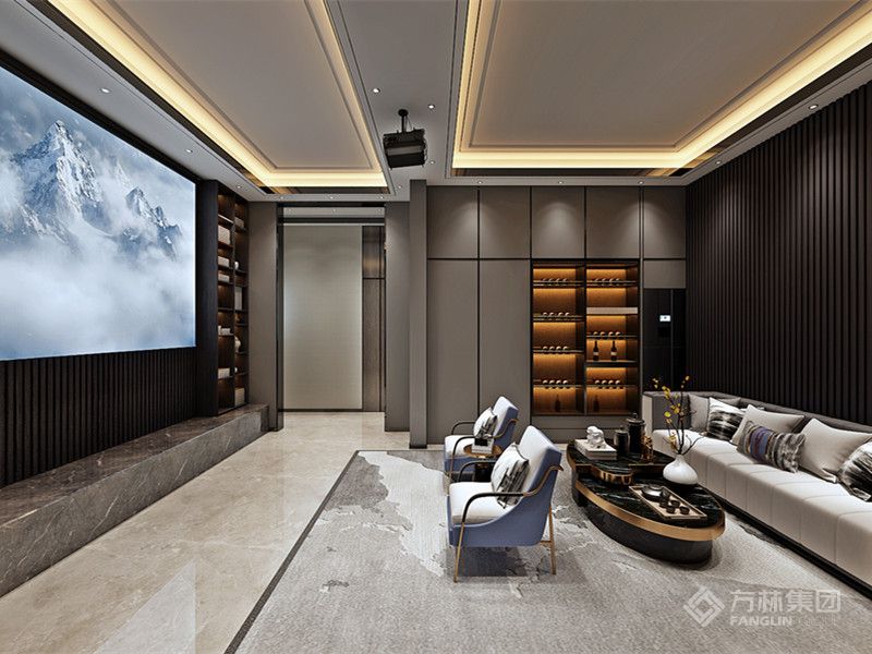 设计将实用功能与美学表达深度绑定:定制化柜体既满足收纳需求,又借内嵌灯光成为展示亮点。