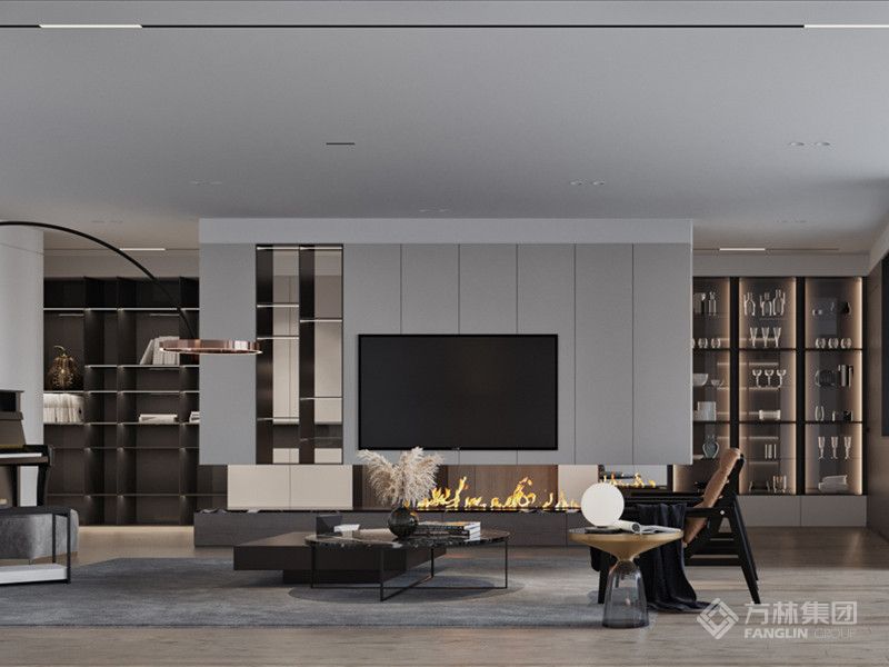 设计将实用功能与美学表达深度绑定:定制化柜体既满足收纳需求,又借内嵌灯光成为展示亮点。