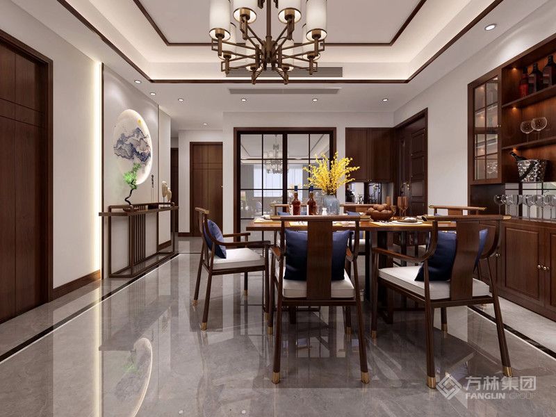 洗茶,温杯 即泉煮一壶心情赏茶色浓郁,品之茶香抬手与放手之间自由诗和远方为了不让中式元素显得呆板,设计师选择了较有现代感的大理石砖面和软装饰品,协调厚重的定制木作,不仅提升了不同材质的品质感,空间氛围也活泼跃动起来。设计表达上,选择了庄重温厚的深系木色做为墙面定制造型,家具棱角清晰,线条流畅有秩序感,对仗工整,准确表达了中式风格的雅致内涵和主人的审美情趣、社会地位。