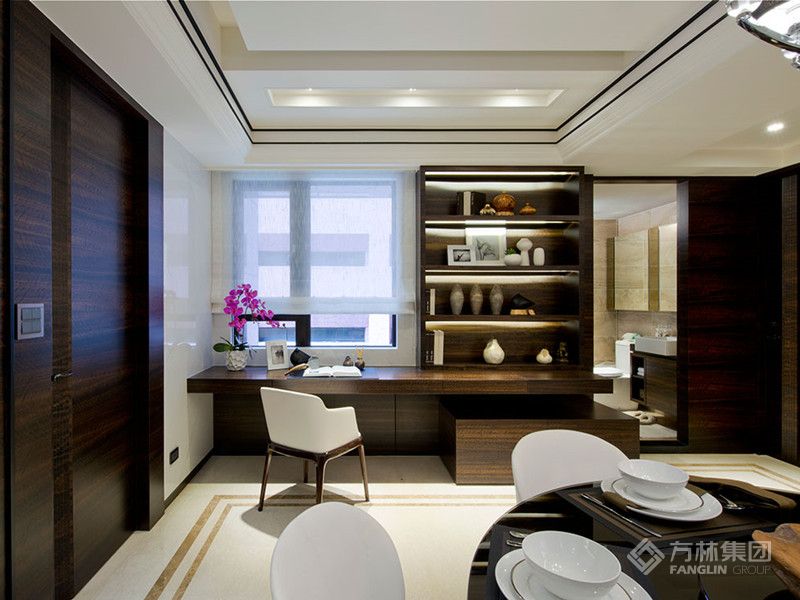 设计将实用功能与美学表达深度绑定:定制化柜体既满足收纳需求,又借内嵌灯光成为展示亮点。