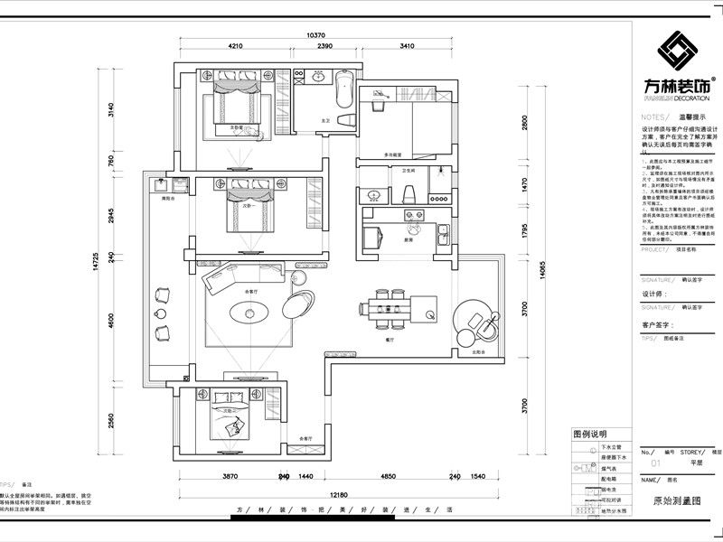 结合客户的大概需求,把不规则的迷宫户型改善一下,经初步沟通,需要四房,三卫只保留两卫,厨房需要扩大,双阳台只有一个做生活阳台,还有一个做休闲阳台,增加客餐厅的通透感。客餐厅做中央空调和无主灯设计,卧室均做常规设计即可。