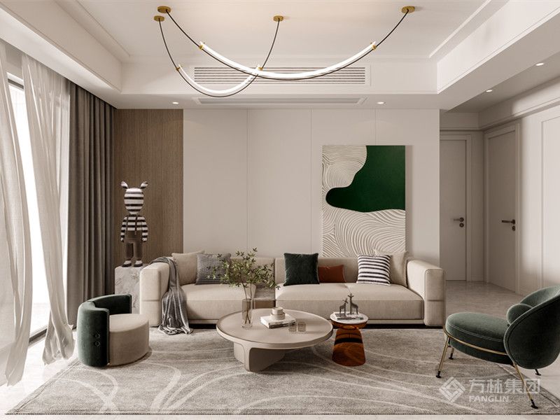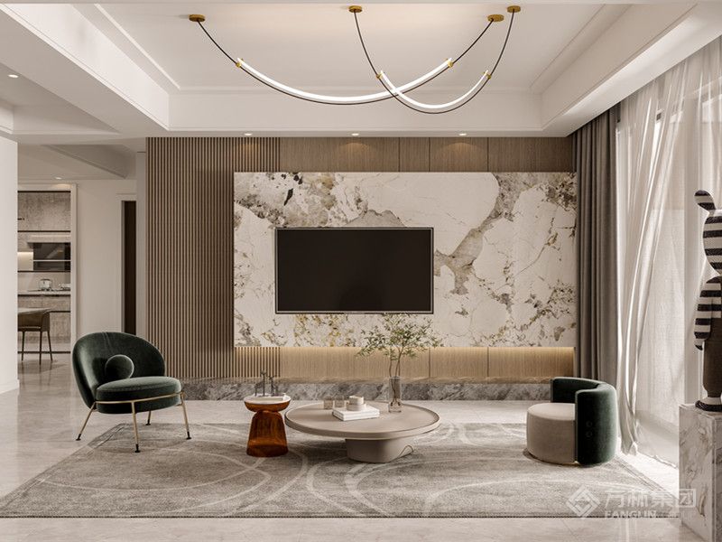 开放式布局拉通区域联动,细节上,造型灯具、软装肌理与景观采光的适配,强化生活质感。