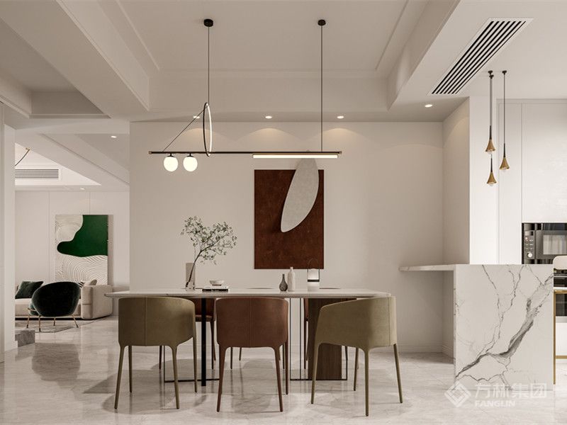 以轻简为底色,揉入细节,铺陈出松弛且有格调的空间氛围。造型灯具、艺术软装与灯光的搭配,丰富视觉层次。