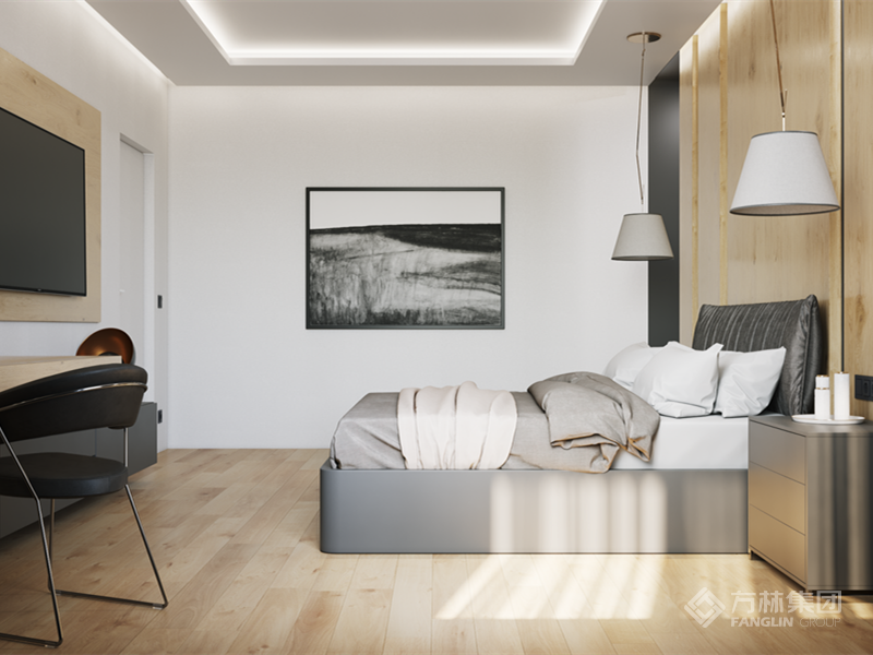 融合轻奢细节,通过浅木、低饱和色系与质感材质的搭配,奠定柔和松弛的空间基调。