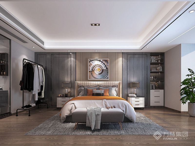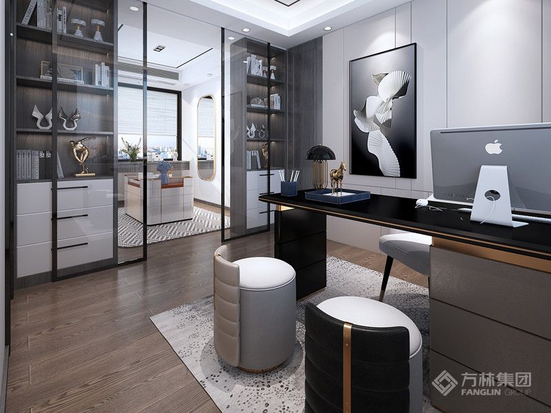 中性的色调,柔和的材质,圆融的质感,半透明材质的卫生间,与主卧区域形式连接,功能区分明确。