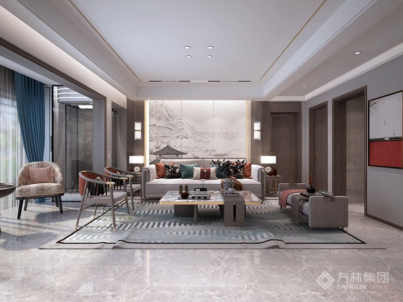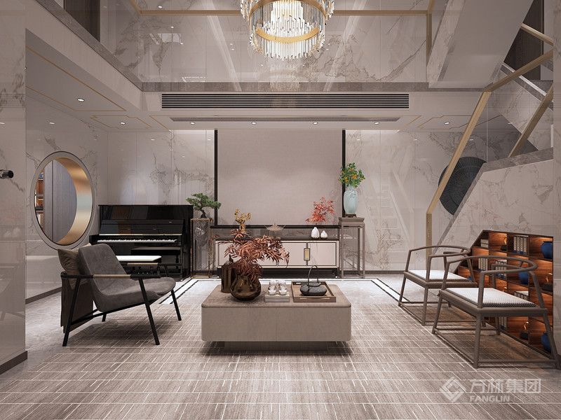 室内以沉稳、内敛的传统文化为基点,精致的中式元素结合传统的现代技艺,呈现带有东方美学的精致空间。复合客厅兼具书房的功能,“腹有诗书气自华”,通过不同功能的组合设计,诠释有东方文化特点的居住空间。